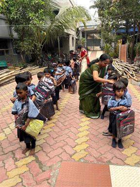 Uniform and bag distribution for the 300 school students at RCV - a. . .